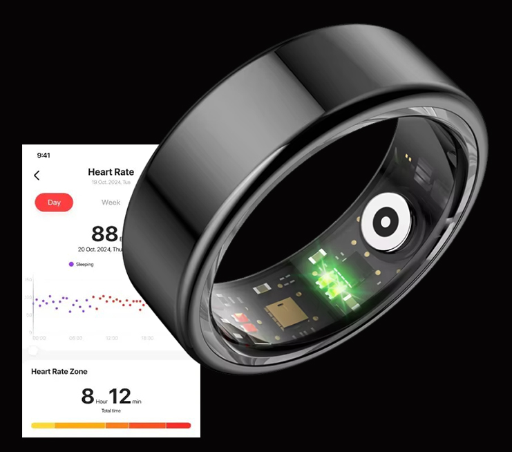 Kompakt och stilren: Med sin lilla, lätta design är Bariveo Smart Ring mer diskret och bekväm än större wearables som smartklockor.